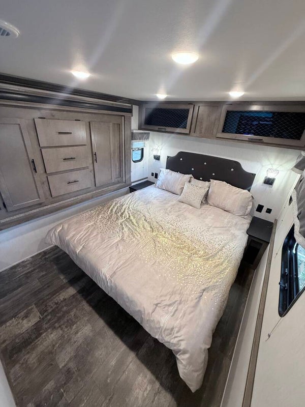 2022 ,43 ft long ,two story fifthwheel with 4 slideouts, floorplan 37FLL, MSRP:$90k ,we have it for $32 000