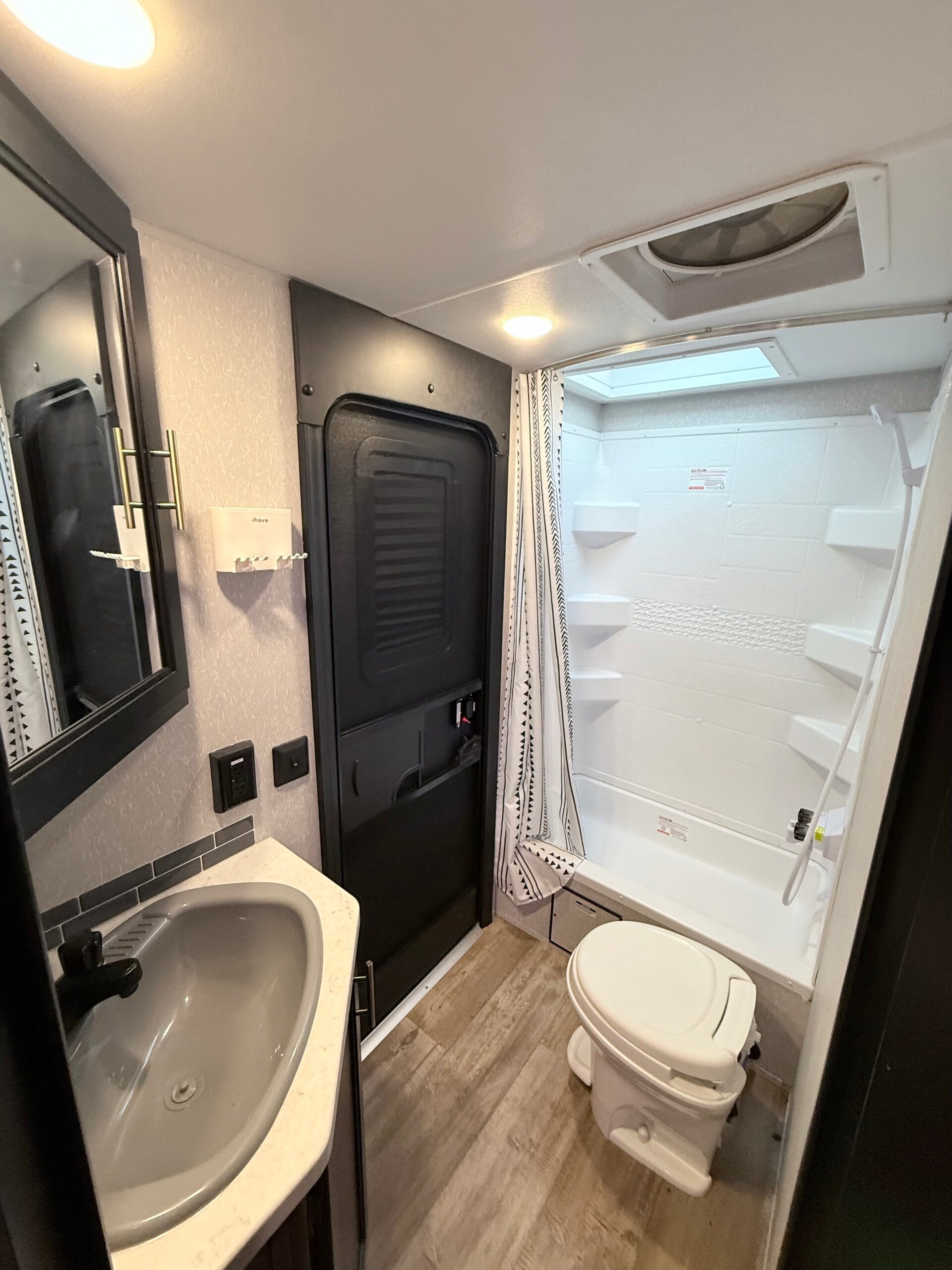 Full exterior kitchen, with ,stove ,fridge & ice maker, electric awning, solar panels installed and more,camper is in new condition ,came with C D title ,not for the road! Stationary purpose only,will provide rv certificate with sale!