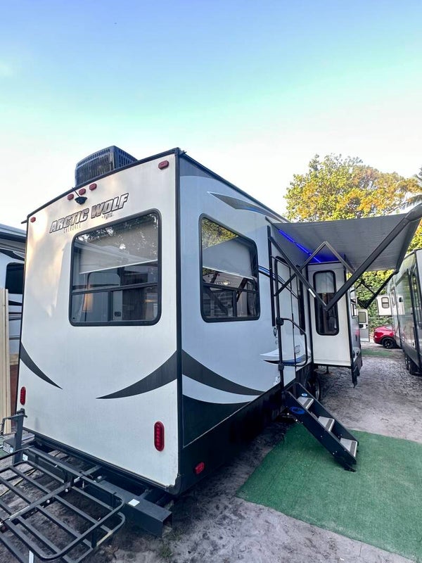 Selling this 2018 Forest River Arctic Wolf 305ML6. Very comfortable living experience! . Blows Ice cold AC & everything is tested before purchase! Perfect Rv for a couple to travel in or for a weekend getaway to the keys with them fam! Features a mid living room / rear kitchen