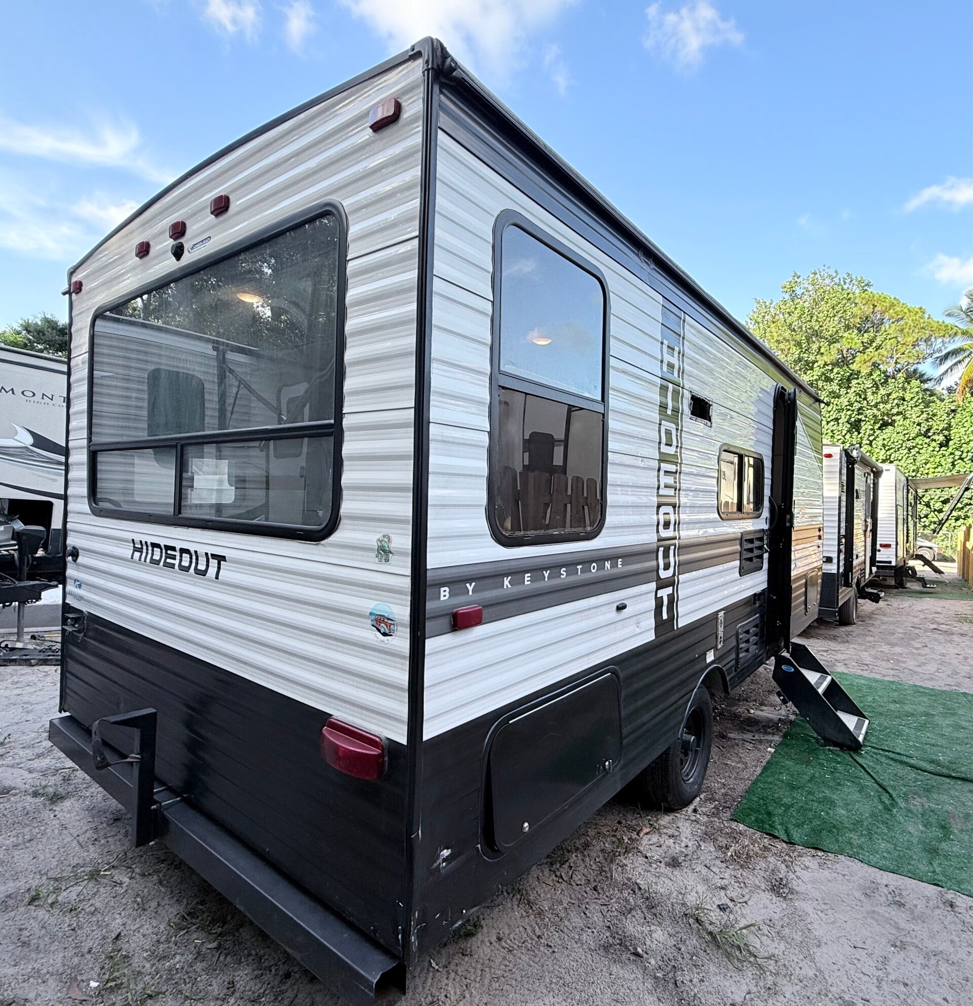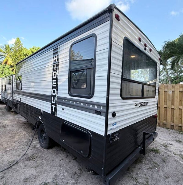 2022 keystone hideou ,pull behind with no slideout, weights 4400 libs all functional, title is rebuilt meaning is ready to travel or park on any Camp site!We do free delivery!We have similar units in stock!