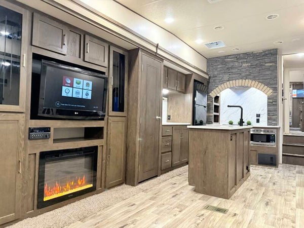 No leaks or soft spots ,electric awning, fireplace, kitchen island