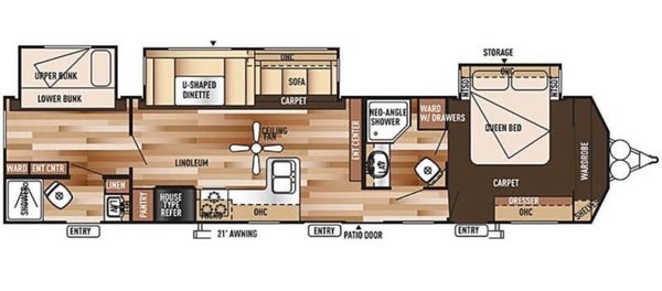 2015 Forest river wildwood, 41 ft long destination trailer with three slideout, floorplan:DLX 426-2B