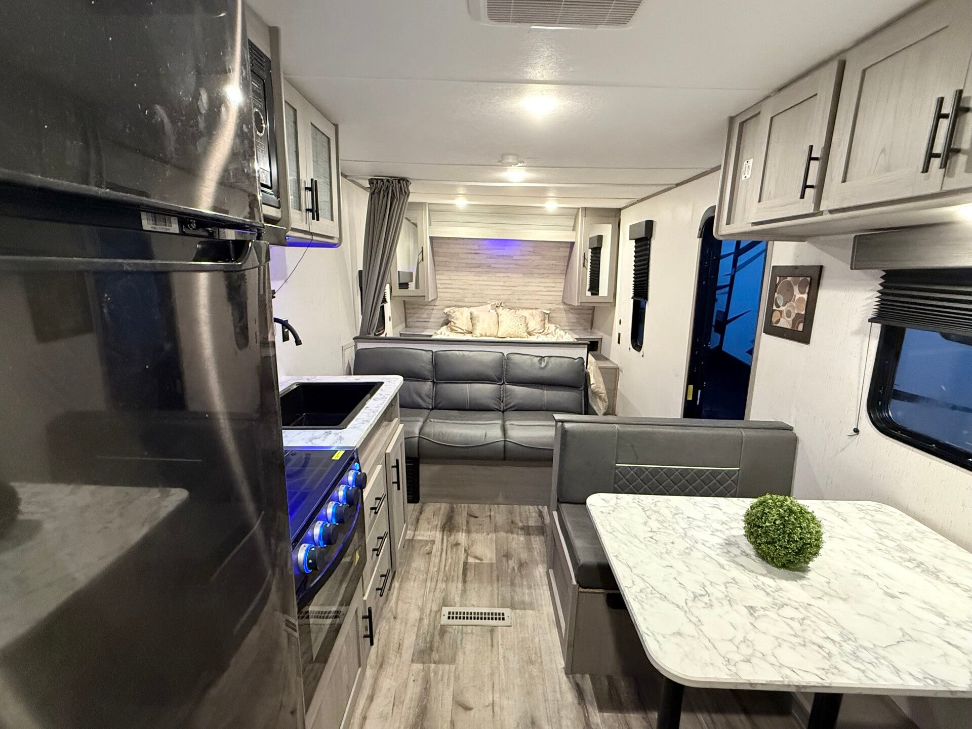 28,5 ft long, 4800lbs with no slideout in great condition, beautiful unit ,sleeping capacity 8 people, rebuilt title, tax,tag & registration included in asking price!