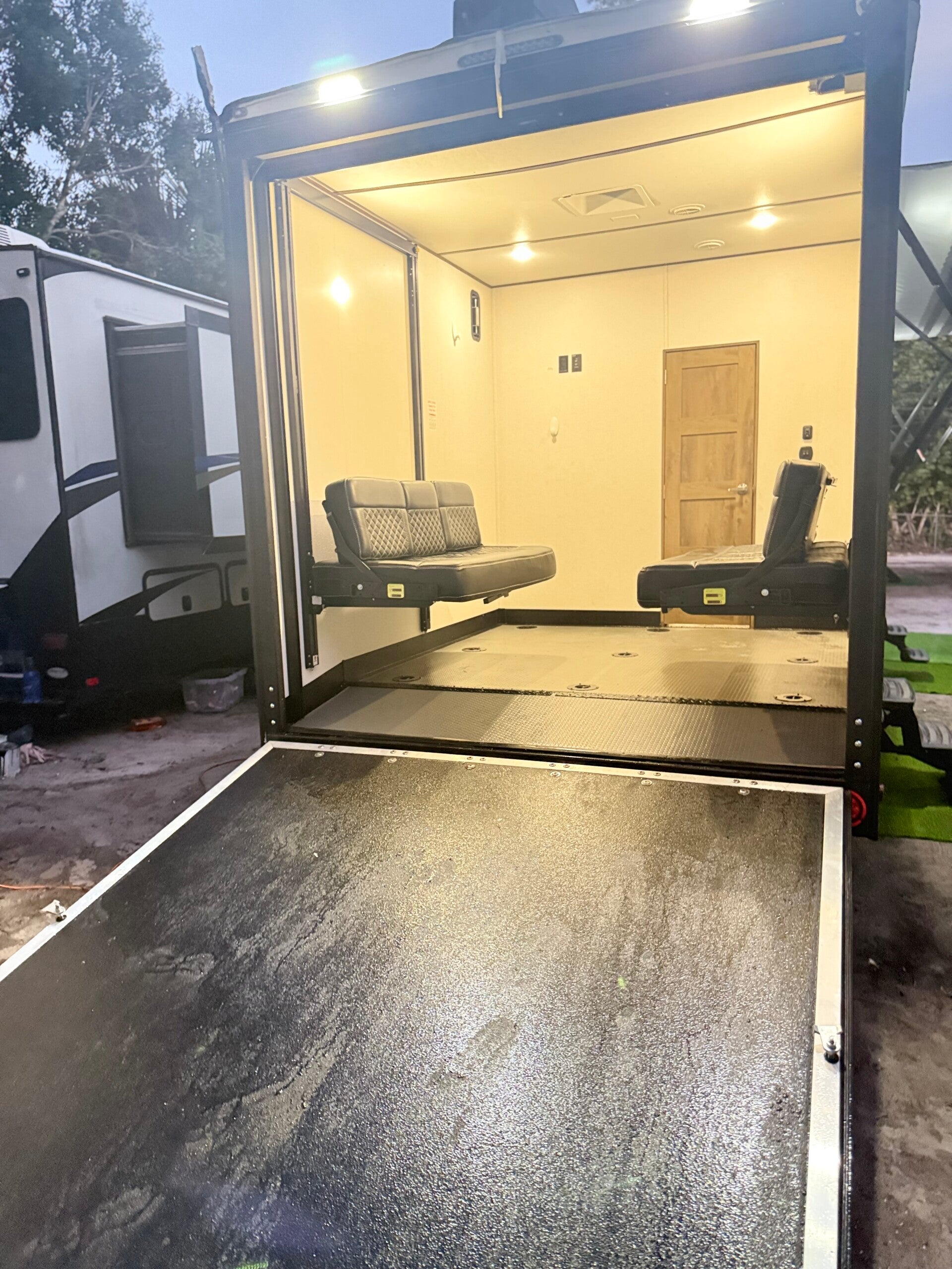 Este hermoso plano 28V pesa 11,200 lbs, cuenta con un slide-out, área de carga de 10 pies, generador a bordo y toldo eléctrico.