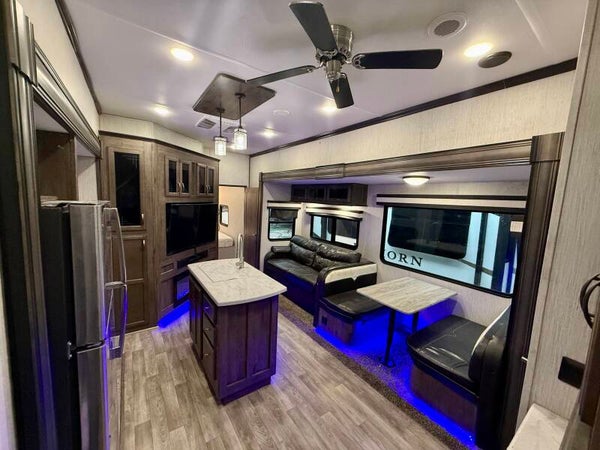 Selling this 2021 Forest River Sandpiper 3440BH Very Comfortable living! Blows Ice cold AC & everything is tested before purchase!.Good condition . 2 room 1.5 bath Perfect for a weekend getaway with your partner or for full time living!!
