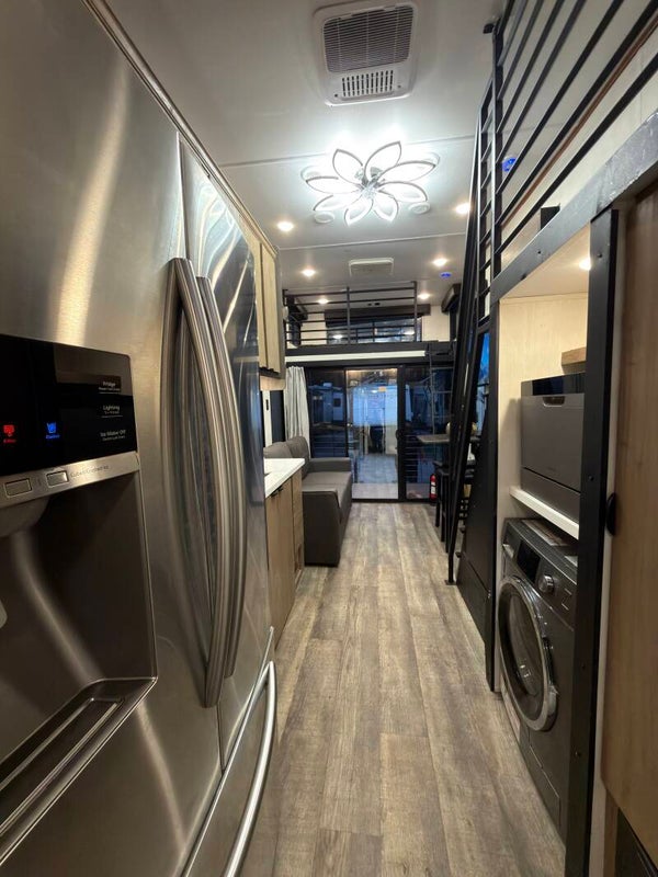 🚐 35.8 ft long | 13.5 ft exterior height | 8,700 lbs dry weight | GVWR 8,774 lbs