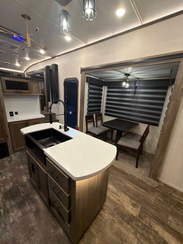 2021 Forest River Sabre 37FLH is a front-living room fifth wheel with a length of approximately 42 feet,5 slideout really spacious & modern interior!