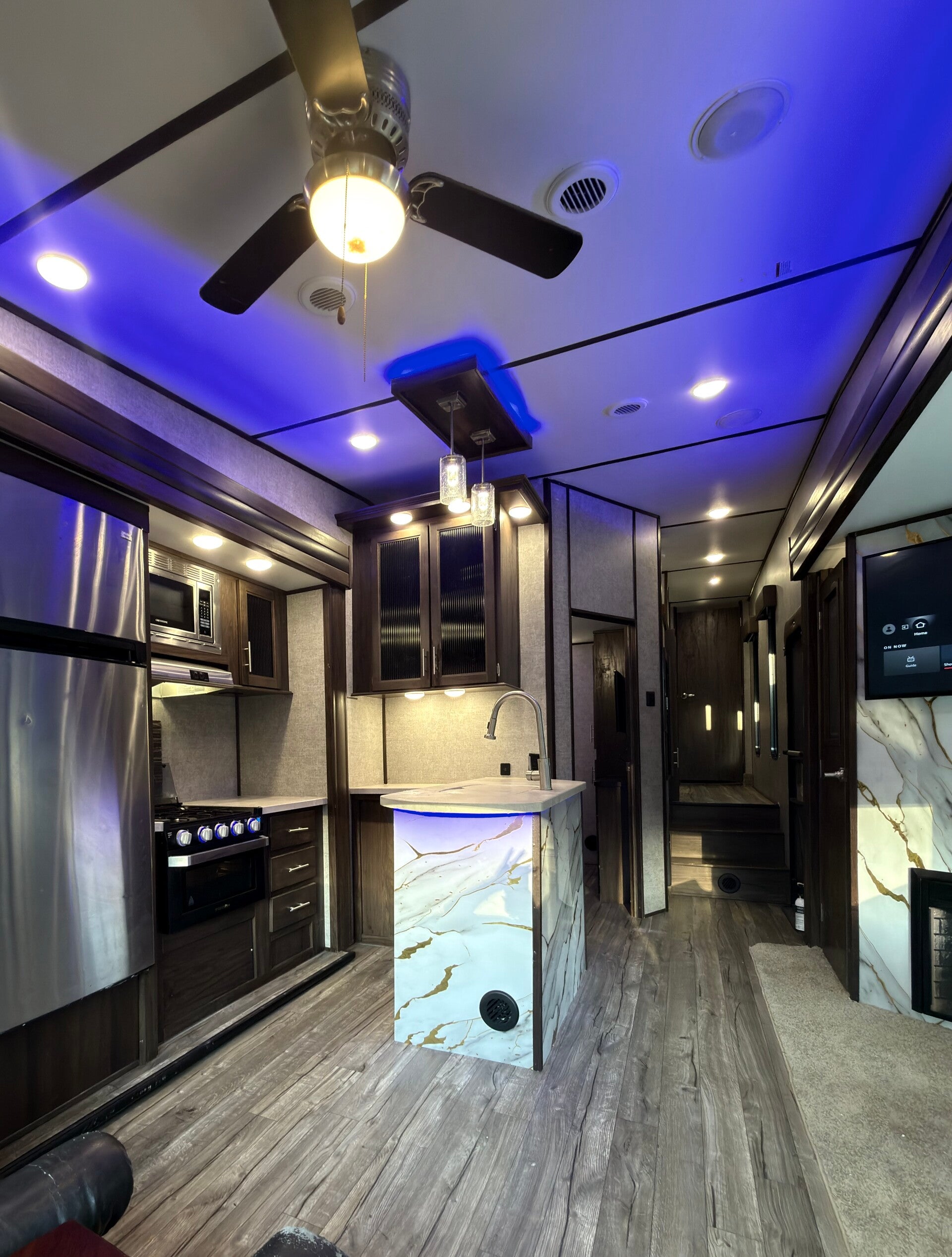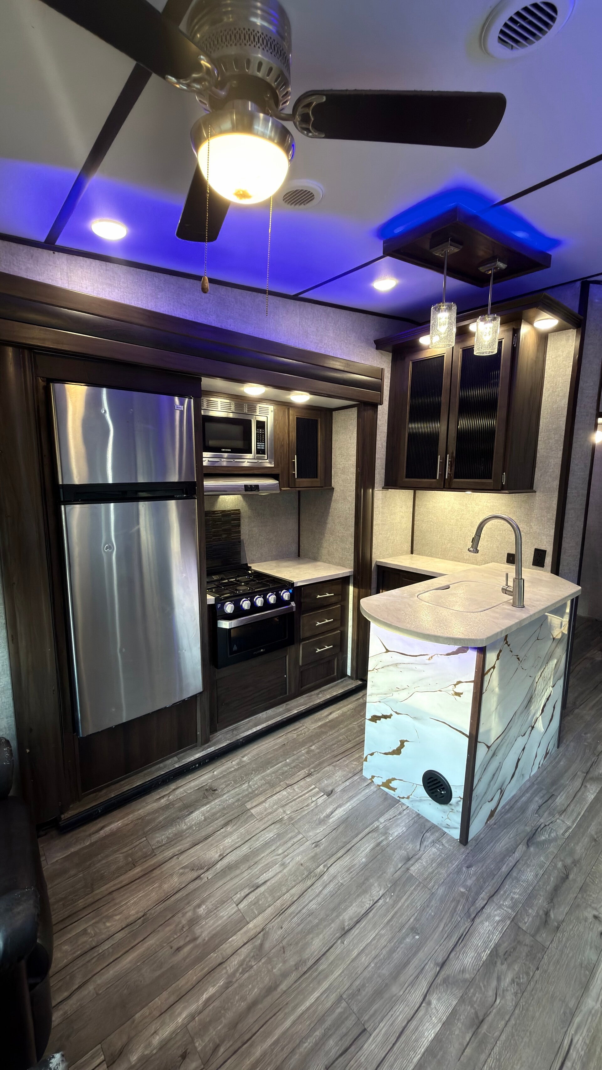 Spacious and modern fifth wheel with great presence.