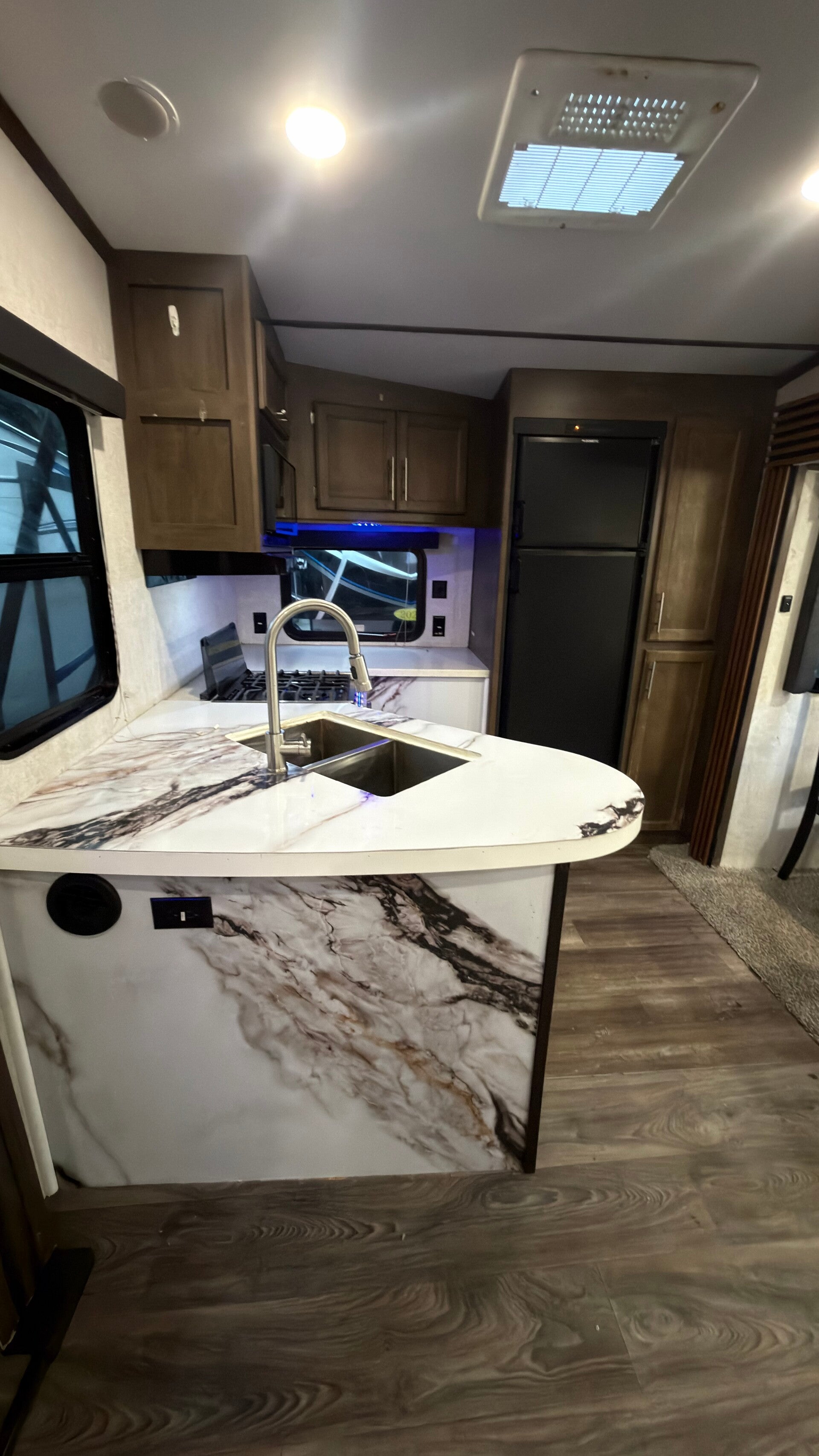 Modelo 29RKS con cocina trasera amplia, sala espaciosa y habitación privada.
