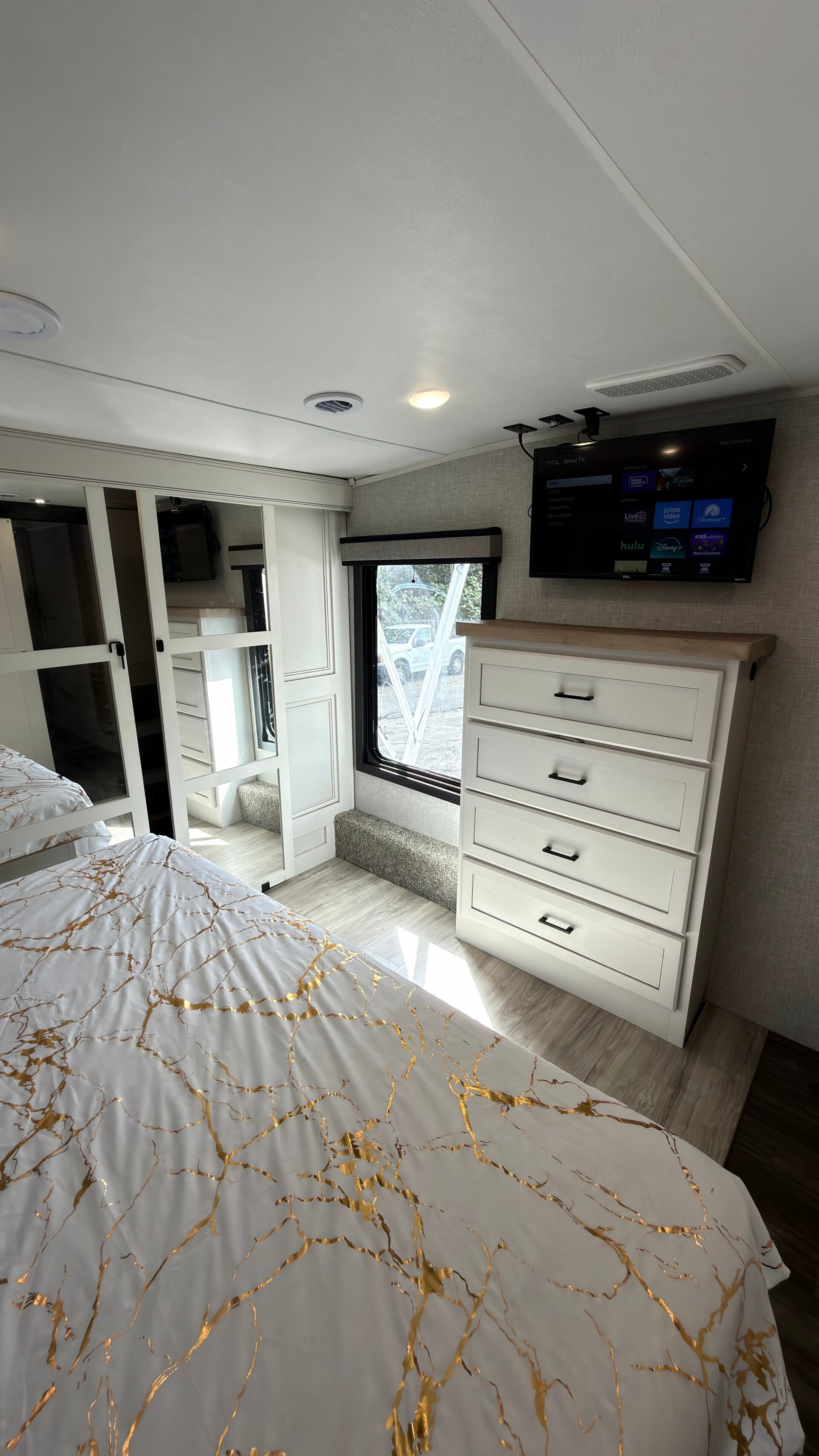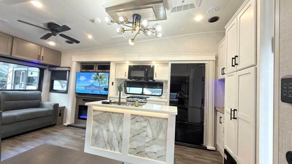 Es un Luxe manufacturado por The RV Factory, familia de Augusta RV, fabricado en Indiana. Una compañía de prestigio reconocida por su construcción sólida y lujo real.